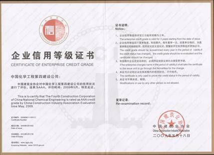 公司在學(xué)習(xí)實(shí)踐科學(xué)發(fā)展觀活動(dòng)中,切實(shí)加強(qiáng)信用管理,嚴(yán)格履行合同,優(yōu)質(zhì)安全文明施工,積極推進(jìn)技術(shù)進(jìn)步,自覺履行社會(huì)責(zé)任,取得了可喜的成效。近日,經(jīng)中國(guó)建筑業(yè)協(xié)會(huì)評(píng)定,公司獲評(píng)首批全國(guó)建筑業(yè)AAA級(jí)信用企業(yè)。