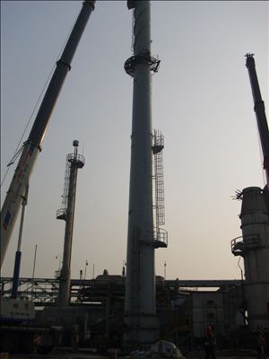 12月1日,第一工程處在南通瑞利化學(xué)有限公司承建的50米高鋼制煙囪順利吊裝就位。