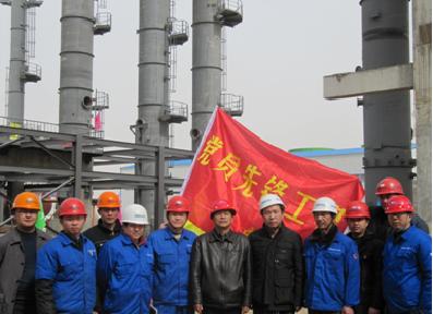 (圖為內(nèi)蒙世林化工煤制甲醇工程現(xiàn)場(chǎng)黨員先鋒工程授旗儀式)
