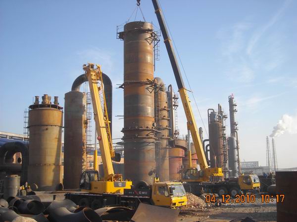 內(nèi)蒙古齊華礦業(yè)有限責(zé)任公司二期復(fù)合肥配套8萬噸合成氨項目,是入內(nèi)蒙不到兩年的內(nèi)蒙古分公司承接的第一個大化肥項目。最初的合同價是1000萬左右,經(jīng)過分公司領(lǐng)導(dǎo)的不懈努力和現(xiàn)場的突岀表現(xiàn),業(yè)主最終把包括造氣、脫硫、脫碳、變換、精脫、壓縮、醇烴化、氨合成、冷凍、循環(huán)水等幾乎全廠所有工段的安裝工作都交給了我方,估計最終的建安工作量將突破3500萬。由于該項目90%以上的設(shè)備都屬于“拆舊用舊”,因此施工難度很大。施工人員在正常安裝之前,需要對舊設(shè)備進(jìn)行檢測和修護(hù),還要剝除設(shè)備上厚厚的銹皮,給它穿上漂亮的“外衣”,又由于這些舊設(shè)備基本上都己找不到當(dāng)初的設(shè)備圖紙,參數(shù)不全,因此現(xiàn)在的設(shè)計工藝往往與設(shè)備對不上,很多地方都需要根據(jù)工藝流程現(xiàn)場來定位,更加大了我方的管理難度和工作量。