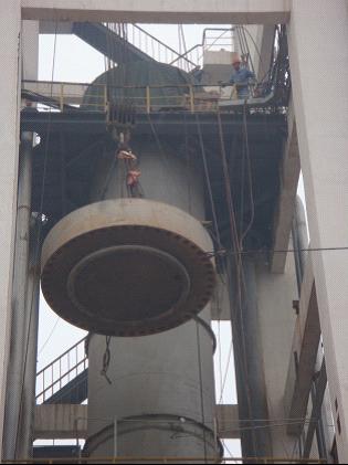 合成塔主體吊裝就位后,隨著外圍配管及塔內觸媒填充結束,定于9月27日吊裝合成塔大蓋。當日,天公頗不作美,秋風瑟瑟,冷雨連連,給吊裝帶來了一定難度。分公司經(jīng)理李杰斌早早到達現(xiàn)場,與技術員、吊裝負責人最后核定技術參數(shù)和起吊方案。大蓋重50噸,采用卷揚機提升法起吊至60米高的合成塔頂。整整一天,李杰斌冒雨堅守在吊裝現(xiàn)場,仔細、認真地察看吊裝動態(tài)。一秒不停的大雨將在場的施工人員淋得透濕。然而,惡劣的天氣阻擋不了大蓋的徐徐上升,下午五點合成塔大蓋順利就位。