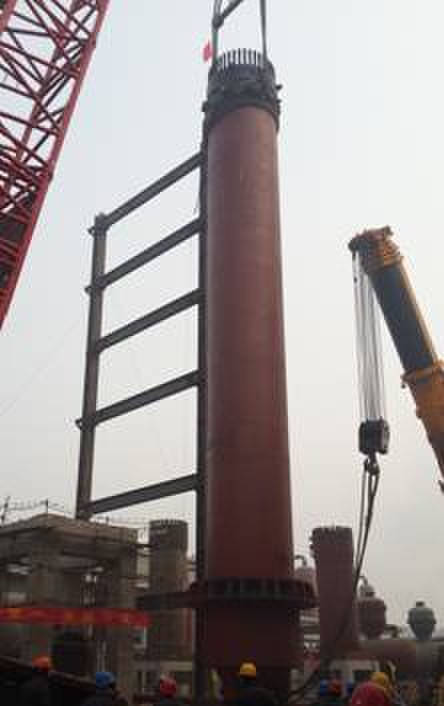 1月10日,煤化工分公司河北東光項(xiàng)目部順利完成河北省東光化工有限責(zé)任公司60萬(wàn)噸尿素改造工程氨合成裝置494噸氨合成塔的吊裝。該氨合成裝置區(qū)共分為五個(gè)單體工段:中壓醇化工段、高壓醇化工段、高壓烷化工段、氨合成工段以及冰機(jī)工段。工段內(nèi)共有各類設(shè)備及內(nèi)件92臺(tái)。其中以這臺(tái)高27.5米、重494噸氨合成塔為最重,也是整個(gè)氨合成裝置中難度最大的設(shè)備吊裝。